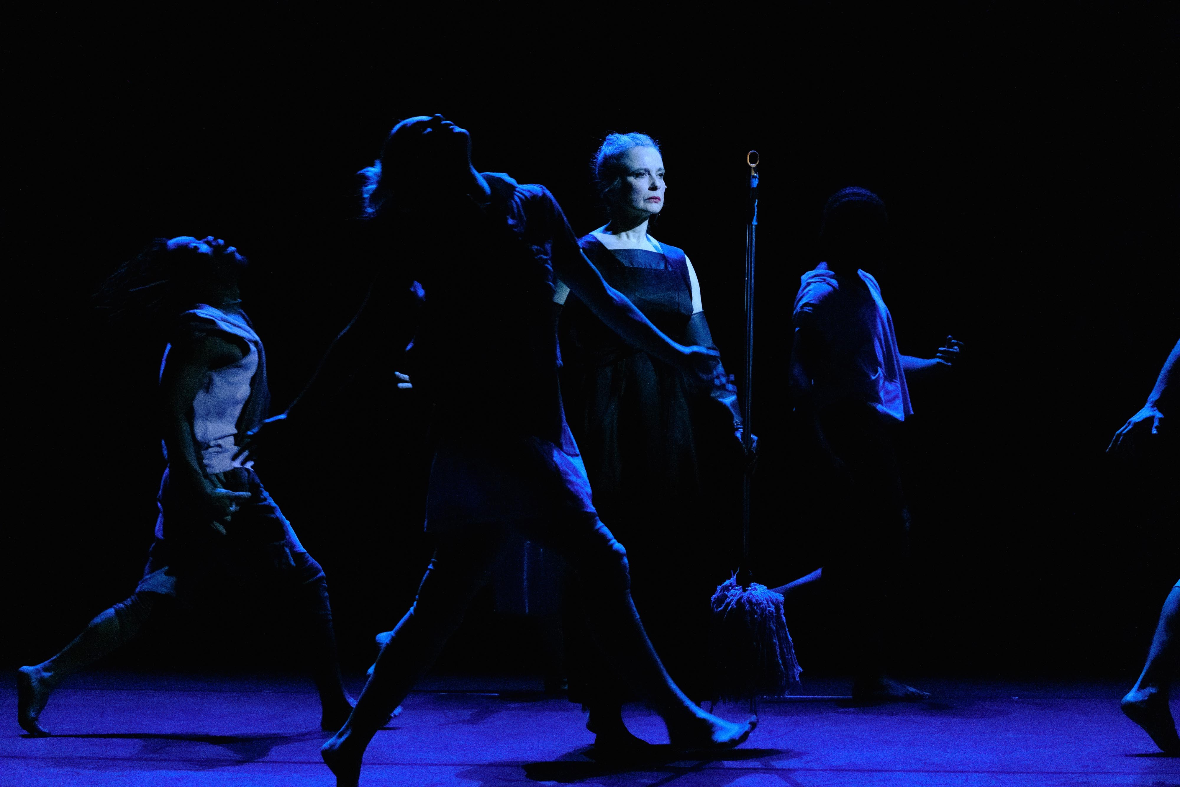 Between pop icon and mater dolorosa, a woman addresses us: at once real and mythical, rebellious, inspired and vibrant, she takes upon herself the pains and tears of the world in order to transfigure them. As she sings and utters the Miserere by Jan Dismas Zelenka (1679 – 1745), a chorus of six dancers, overflowing with energy, gravitates around her, the embodiment of the haunting and ever-renewed life forces …