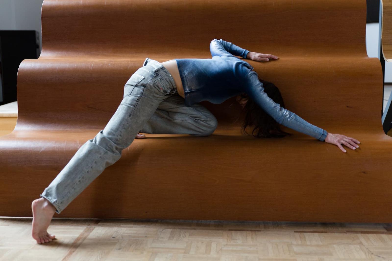 Dans la première, Waierstall propose une écriture du mouvement sobre et structurée, en dialogue avec la sculpture Arena Seating de l’artiste-plasticienne Rita McBride. Cette performance explore la relation entre corps et espace, invitant le public à rêver son environnement.